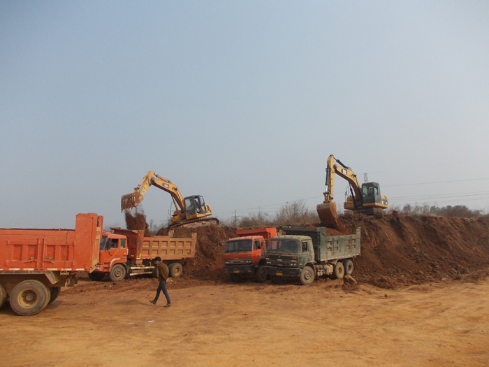 近日,公司承接的常福工業(yè)園場平項目上9臺大挖機一字排開,四臺推土機來回穿梭,60臺轉運車輛川流不息,施工場面異?;鸨?,為來年施工開了一個好局面。