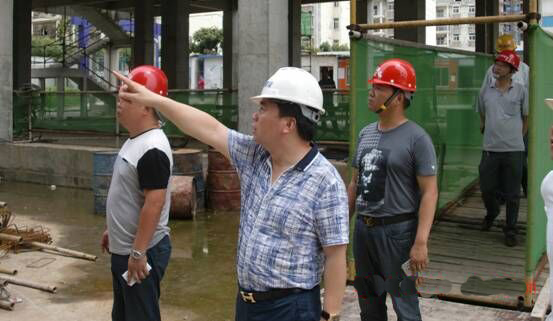 2015年6月13日周六上午,集團(tuán)公司召開(kāi)完周行政工作例會(huì)后,在總經(jīng)理徐遠(yuǎn)征同志的帶領(lǐng)下,市場(chǎng)管理部、工程管理部、招投標(biāo)部、綜合管理部、市政分公司負(fù)責(zé)人第一站來(lái)到蔡甸大拇指廣場(chǎng)檢查施工現(xiàn)場(chǎng)文明施工整改情況,總經(jīng)理首先肯定了上次檢查整改后施工現(xiàn)場(chǎng)明顯改觀,隨后就進(jìn)一步完善圍擋角區(qū)、安全帽佩戴等進(jìn)一步提出了要求;第二站來(lái)到大集張堡小學(xué)施工現(xiàn)場(chǎng),對(duì)墻基坑深度提出了嚴(yán)格按圖紙施工的規(guī)范要求,安排由公司工程管理部對(duì)該施工工地實(shí)行24小時(shí)嚴(yán)格監(jiān)管的做法得到了校方領(lǐng)導(dǎo)的充分肯定。
