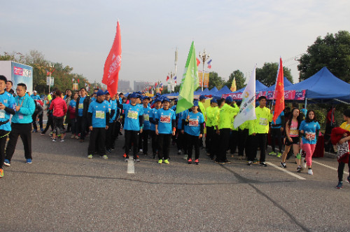 早上8點半,隨著一聲發(fā)令槍響,2016武漢后官湖半程馬拉松正式開賽!本次賽事共設(shè)兩項比賽,由2000名選手參加的21公里半馬跑和4000名選手參加的5公里健康跑組成的跑步大軍,共同圍繞著后官湖國家濕地公園,途徑風(fēng)光旖旎的原生態(tài)景觀,感受最清新爽朗的江城奔跑。在人山人海的跑步大軍里有一群身穿藍色戰(zhàn)服的團隊——湖北大集建設(shè)集團有限公司員工,他們手持企業(yè)司旗,步伐有力,活力四射的點綴在武漢第一的郊野綠道上,成為后官湖深秋最亮眼的風(fēng)景線!讓我們共同迎接這場盛大的賽事!