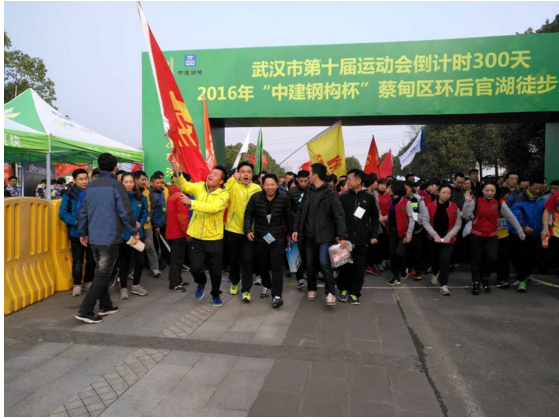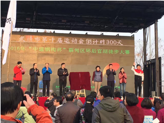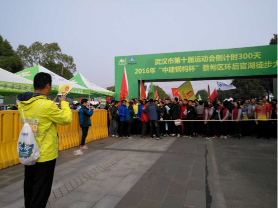 12月10日上午9點整,2016“中建鋼構杯”蔡甸區(qū)環(huán)后官湖徒步大賽在山靈水秀的白蓮湖廣場鳴槍開賽。3856名參賽人員從這里出發(fā),在風景如畫的濕地公園,領略沿途的自然風光,感受非一般清新的武漢。奔馳這樣遠離都市喧囂的綠色賽道上,不僅是一場完美的人生體驗,更是一次絕佳的身體放松之旅。湖北大集建設集團在董事長徐濤的帶領下以最飽滿的熱情迎接這場賽事!