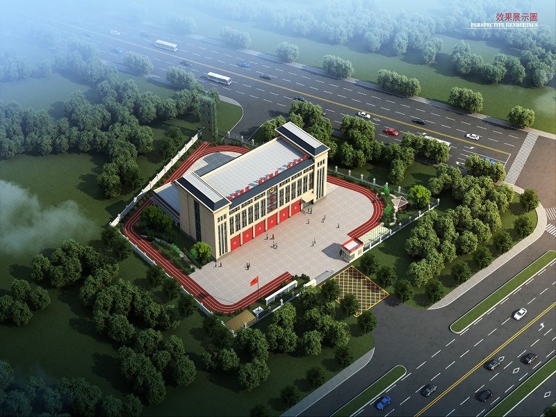 大集消防站項(xiàng)目位于蔡甸區(qū)大集街知音湖大道與天鵝湖大道交叉口西南角,總建筑面積3848.62平方米,平行知音湖大道布置1棟4層業(yè)務(wù)大樓,南端垂直業(yè)務(wù)大樓附建1棟1層食堂,另外配套有訓(xùn)練塔、門房等輔助設(shè)施。業(yè)務(wù)大樓和食堂外側(cè)為環(huán)形消防車道(兼作訓(xùn)練跑道),項(xiàng)目分別朝向知音湖大道和天鵝湖大道開設(shè)主、次出入口。
