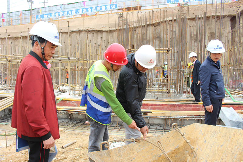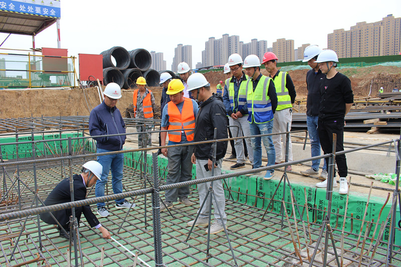 在項目部負責人的陪同下,徐副總一行深入項目施工現(xiàn)場,分別對9#樓地下室止水鋼板施工、16#樓地下室底板鋼筋綁扎等進行了嚴格的檢查,并對檢查中發(fā)現(xiàn)的問題提出了整改意見,要求項目部嚴格按照標準要求整改到位。