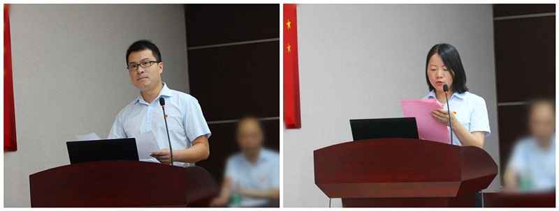 優(yōu)秀黨員代表彭輝、預(yù)備黨員鄧雪芬做了深刻的思想?yún)R報后,行政部兼法務(wù)部部長李漢毛公布了集團公司2019年第二季度項目績效考核結(jié)果,并對今年新修訂的項目績效考核制度實施情況進行了總結(jié)。