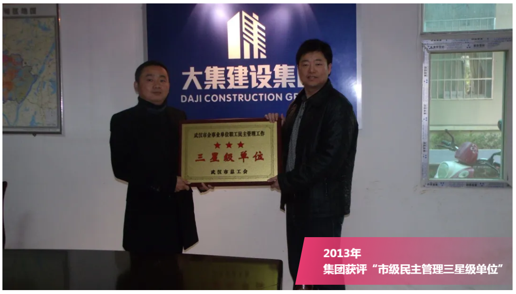 近日,武漢市總工會下發(fā)文件,湖北大集建設(shè)集團通過復(fù)審評定,榮獲“2019年度武漢市職工民主管理五星級單位”榮譽稱號,武漢市僅33家單位獲此殊榮。該項榮譽是武漢市企務(wù)公開民主管理工作最高級別的獎項,也是湖北大集建設(shè)在公司推行民主管理領(lǐng)域獲得的又一殊榮。