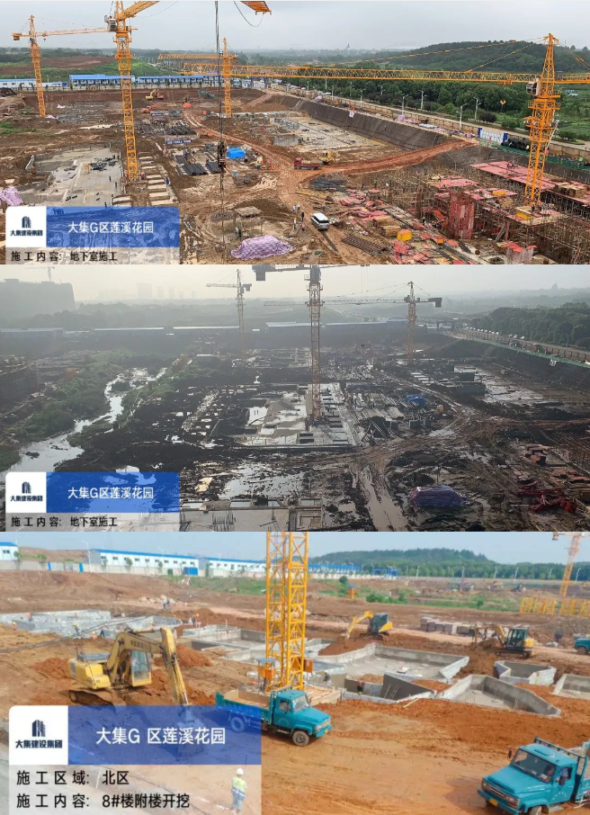 近期,由于雨水較多,項(xiàng)目工程進(jìn)度受到一定影響,在這沒有硝煙的戰(zhàn)場(chǎng)上,項(xiàng)目部一線員工小雨當(dāng)冒汗、大雨搶著干、連續(xù)陰雨賽著干,繼續(xù)發(fā)揚(yáng)“5+2、白+黑、雨+晴”連續(xù)作戰(zhàn)精神,奮力拼搏,在保證安全和質(zhì)量的前提下,搶時(shí)間、趕進(jìn)度。截至目前,大集G區(qū)蓮溪花園項(xiàng)目已完成6#、8#樓一層柱、二層梁板施工,1#樓及副樓地下室頂板模板鋼筋已完成80%,2#樓、3#樓基礎(chǔ)鋼筋已完成40%,4#樓地下室頂板模板施工已完成50%,5#樓基礎(chǔ)鋼筋施工已完成50%,7#樓基礎(chǔ)鋼筋施工已完成70%。