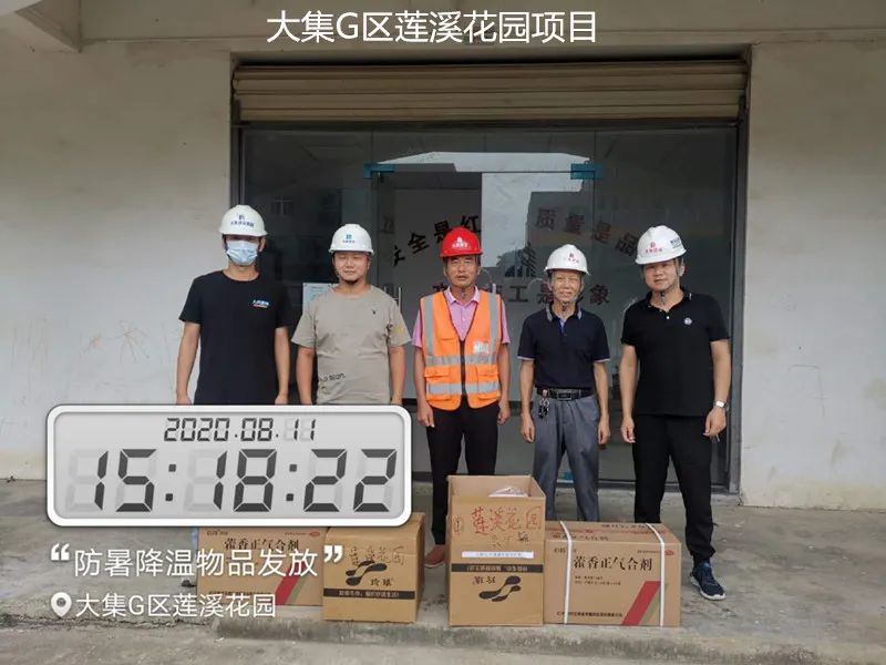 大集G區(qū)蓮溪花園項(xiàng)目、大集街農(nóng)村污水治理項(xiàng)目、大集景綠網(wǎng)紅特色小鎮(zhèn)項(xiàng)目、世茂龍灣47#號(hào)地塊別墅樓工程、黃星大道加油站項(xiàng)目、年產(chǎn)80萬(wàn)套總成項(xiàng)目、常貴路西延伸段項(xiàng)目、泰禾君悅花園項(xiàng)目、碧桂園光谷云鏡項(xiàng)目……每到一處,集團(tuán)工程部都會(huì)將購(gòu)買好的毛巾、風(fēng)油精、人丹、十滴水、藿香正氣水、蚊不叮等防暑降溫物資送到項(xiàng)目人員手中,并要求各項(xiàng)目部一定要把施工人員的身體健康放在首位,要在全力以赴抓質(zhì)量、搶進(jìn)度、創(chuàng)佳績(jī)的同時(shí),嚴(yán)格按照國(guó)家有關(guān)規(guī)定,把防暑降溫工作落實(shí)好、做到位,要根據(jù)天氣氣溫的變化,合理安排工作時(shí)間,作好安全預(yù)防措施、備足防暑降溫物質(zhì),讓員工們安全度過高溫天氣。