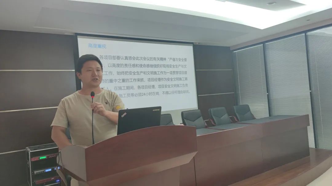 緊接著,工程部安全主管秦春波表明安全生產(chǎn)的重要性并進(jìn)行了詳細(xì)說(shuō)明,提出了安全第一、強(qiáng)化意識(shí)、教育培訓(xùn)、預(yù)防為主、防治結(jié)合的安全施工理念,著重講述細(xì)微的安全隱患,讓各位項(xiàng)目工作人員引起重視。