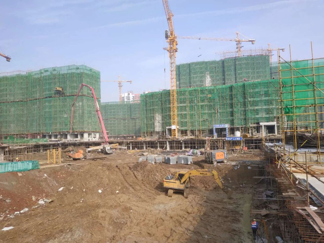 半個月的陰雨連綿之后,突然放晴的天氣讓各工地顯得格外忙碌,一大早,各施工現(xiàn)場已是人員繁忙,機器轟隆,一派井然有序、熱火朝天之象。