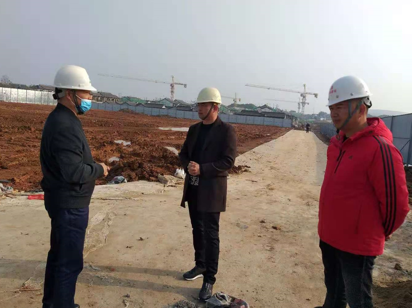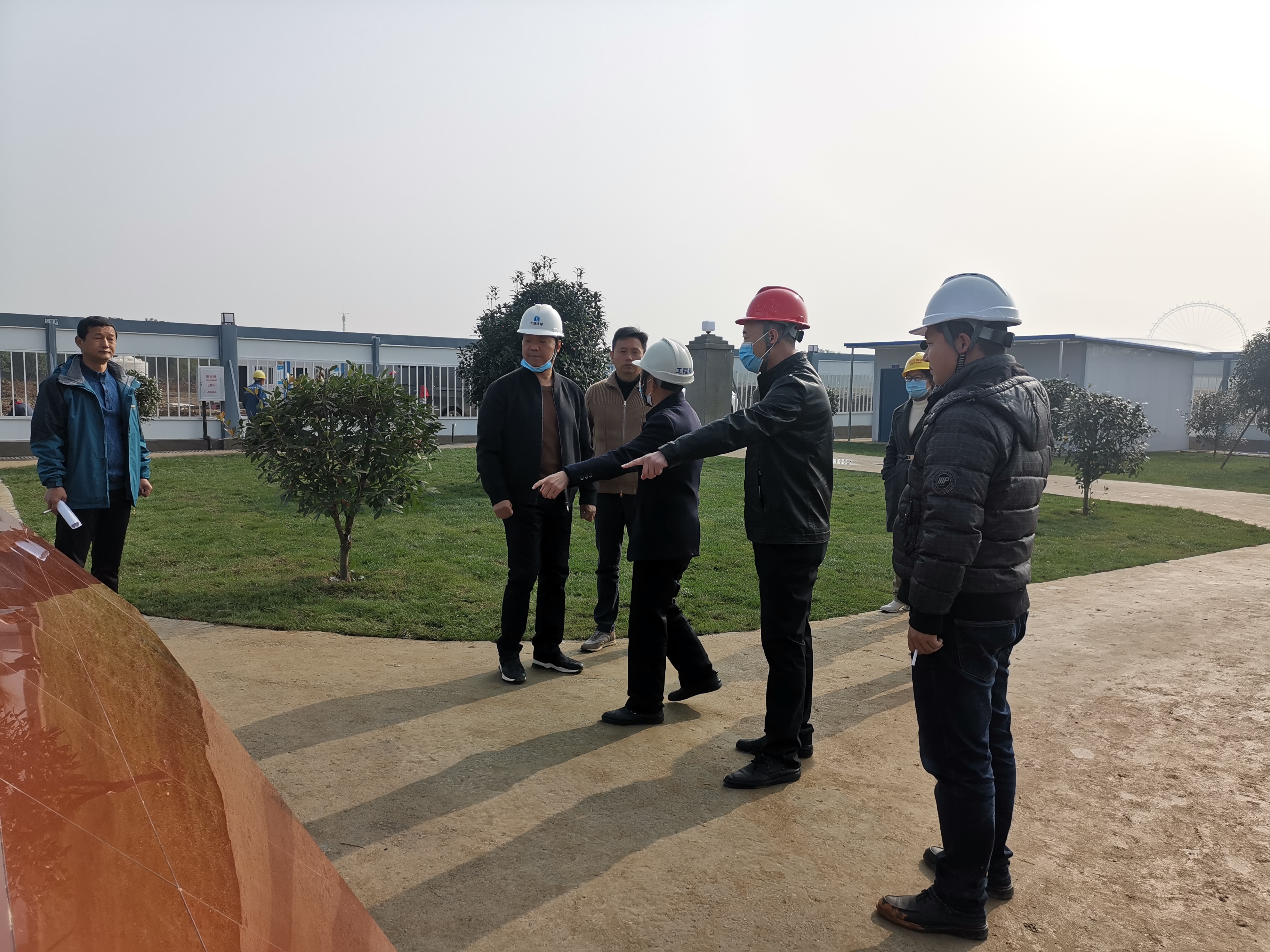 在大集G區(qū)蓮溪花園項目,徐副總一行首先在辦公區(qū)查看了工作環(huán)境,詳細(xì)了解目前項目的施工情況和進度,同時對項目現(xiàn)場安全防護、農(nóng)民工宿舍等進行仔細(xì)檢查,并對項目安全、質(zhì)量、進度和疫情防控工作給予充分肯定。