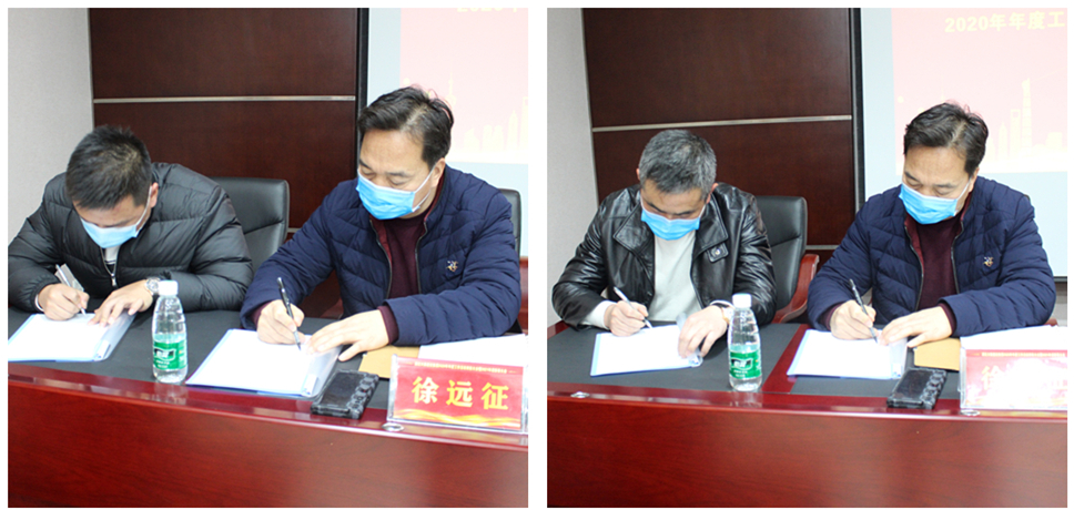 會議進(jìn)行目標(biāo)責(zé)任書簽署儀式。集團(tuán)董事長徐濤分別與各部門負(fù)責(zé)人、分公司負(fù)責(zé)人簽訂了2021年度經(jīng)營目標(biāo)責(zé)任書;集團(tuán)總經(jīng)理徐遠(yuǎn)征、副總經(jīng)理徐家富分別與房建項目、市政項目代表簽訂了2021年度目標(biāo)責(zé)任書。