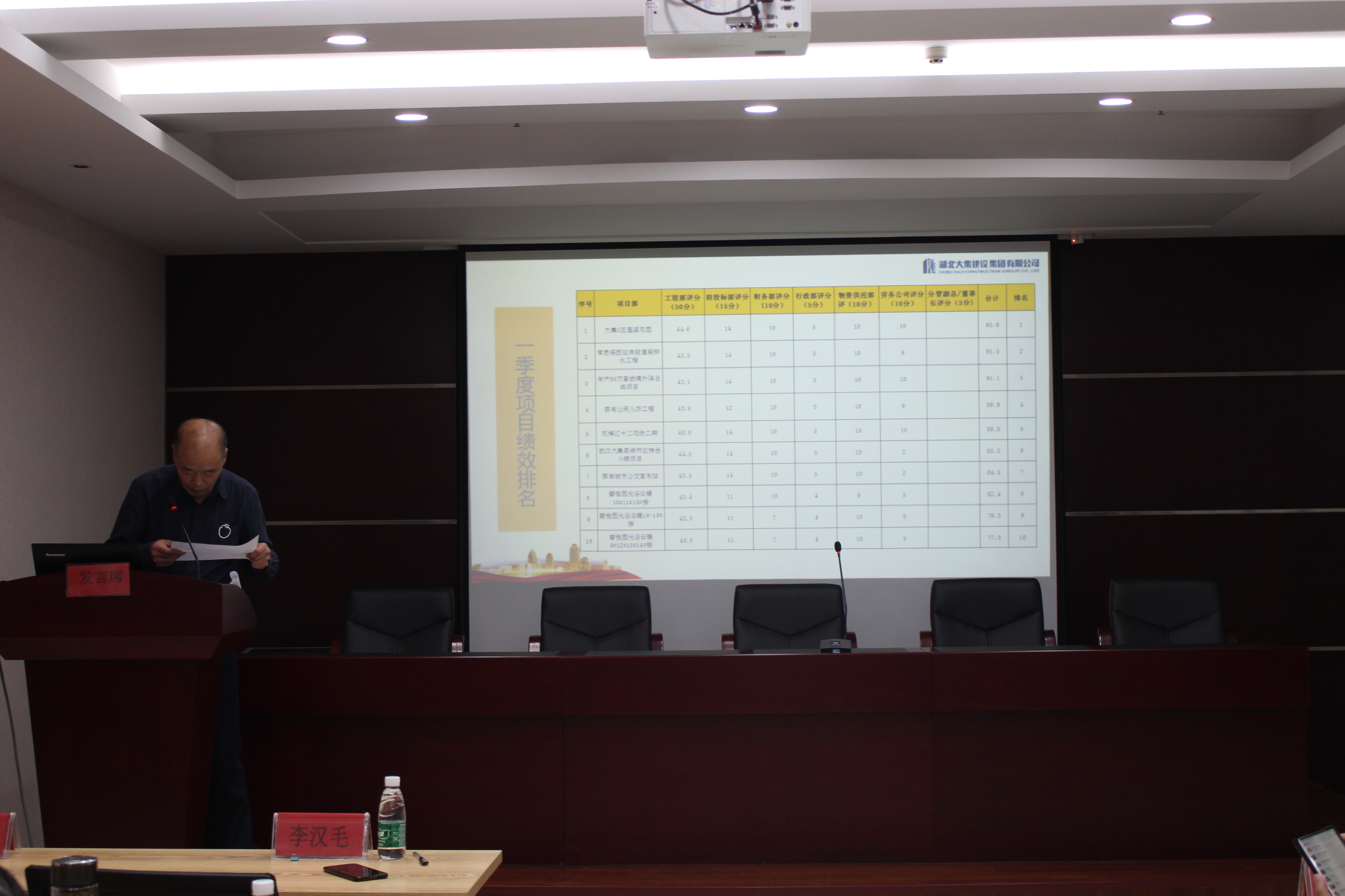 隨后,行政部部長(zhǎng)李漢毛公布項(xiàng)目第一季度績(jī)效考核排名,并由集團(tuán)公司董事長(zhǎng)徐濤為第一季度項(xiàng)目績(jī)效冠軍——大集G區(qū)蓮溪花園項(xiàng)目頒發(fā)錦旗及獎(jiǎng)金。