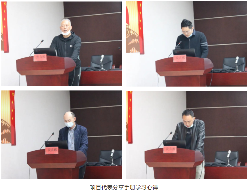 項目經理代表周感書、房建施工員代表魏巍、房建安全員代表張彥偉以及市政施工員代表彭文杰依次上臺,從不同角度分享了他們對《湖北省質量安全手冊》的學習心得。