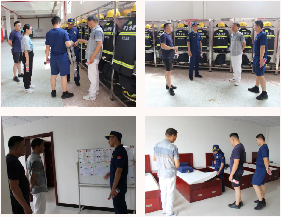 大集消防救援站教導(dǎo)員盧志帶著大家參觀了消防裝備庫(kù)及消防官兵備勤室,參觀中,集團(tuán)公司副總經(jīng)理徐家富與盧教導(dǎo)員進(jìn)行了深入交流,詢(xún)問(wèn)官兵們的日常生活及工作情況,并向高溫下堅(jiān)持訓(xùn)練、持續(xù)工作的他們表示敬意。