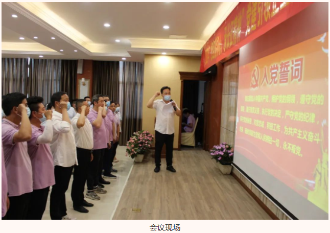 會(huì)議開始,湖北大集建設(shè)集團(tuán)黨支部書記徐遠(yuǎn)征同志帶領(lǐng)全體黨員重溫入黨誓詞。在徐遠(yuǎn)征同志領(lǐng)誓下,全體黨員舉起右拳,莊嚴(yán)宣誓,鏗鏘有力的聲音,久久響徹耳邊,共同表達(dá)了不忘初心,牢記使命,永遠(yuǎn)奮斗的堅(jiān)定決心。