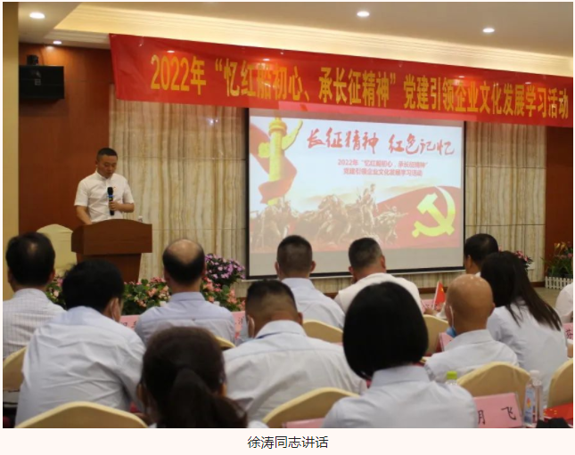 為慶祝建黨101周年,進(jìn)一步推進(jìn)黨史學(xué)習(xí)教育,增強(qiáng)隊(duì)伍凝聚力、向心力與戰(zhàn)斗力,湖北大集建設(shè)集團(tuán)聯(lián)合武漢閱景匯公司于6月16日上午共同開展2022年“憶紅船初心,承長(zhǎng)征精神”黨建引領(lǐng)企業(yè)文化發(fā)展學(xué)習(xí)活動(dòng),兩家公司的全體黨員、入黨積極分子以及中高層領(lǐng)導(dǎo)、優(yōu)秀骨干員工參加了學(xué)習(xí),會(huì)議由湖北大集建設(shè)集團(tuán)黨支部書記徐遠(yuǎn)征主持。