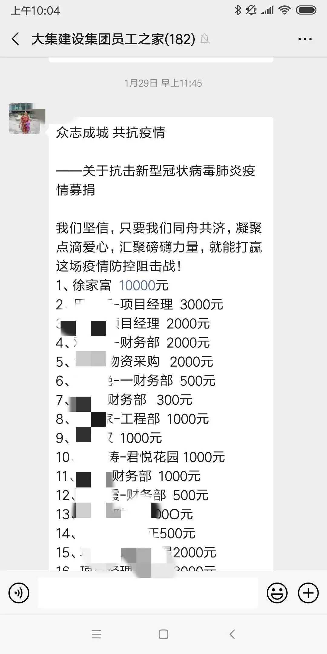 徐總親自動員全體員工共同抗疫,并身先士卒帶頭捐款1萬元