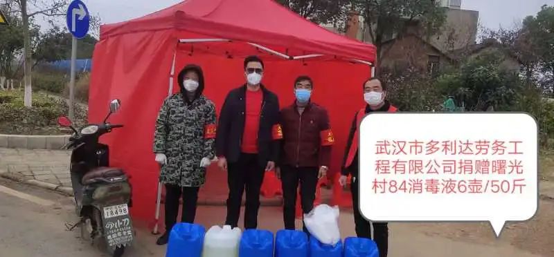 2、疫情形勢嚴(yán)峻,三位周總想法設(shè)法籌備40件84消毒液、兩大件酒精捐給田家堡村,采買300斤84消毒液捐贈給曙光村,用于支援抗疫工作;