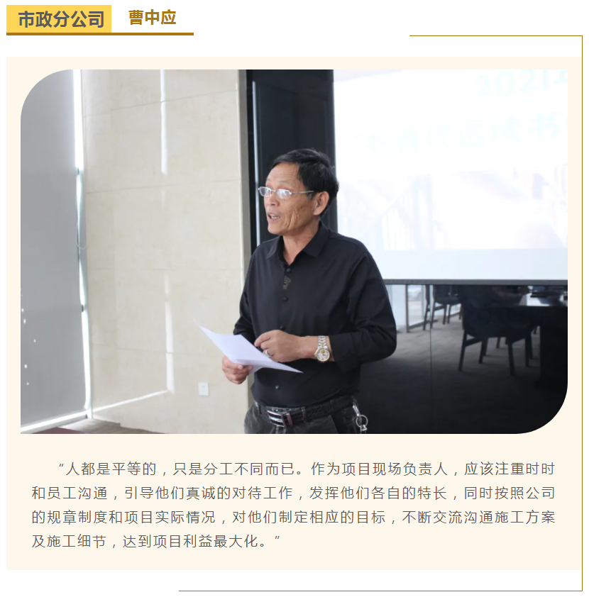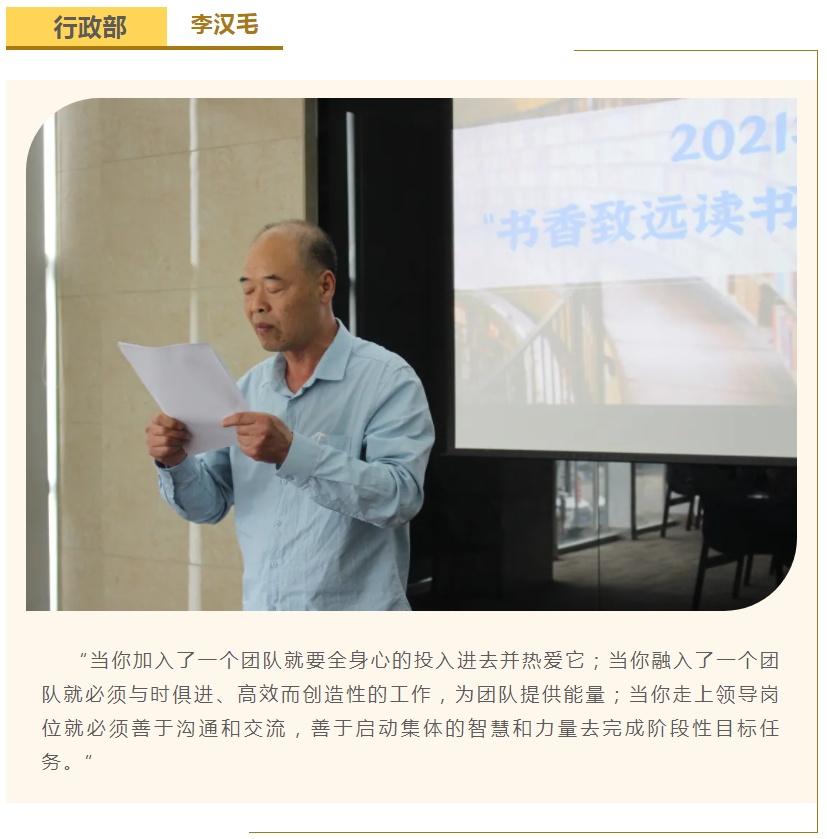 此次中高層領(lǐng)導(dǎo)共讀并分享的書籍是《麥肯錫團(tuán)隊(duì)管理法》,集團(tuán)公司七位部門負(fù)責(zé)人依次上臺(tái),結(jié)合各自的實(shí)際工作、管理經(jīng)驗(yàn)等,對(duì)書中的觀點(diǎn)進(jìn)行闡述與分析。在思想交流碰撞中,各位部門負(fù)責(zé)人進(jìn)一步加深了對(duì)團(tuán)隊(duì)管理的認(rèn)識(shí),反思了自己在部門管理中存在的問(wèn)題,了解了更多的管理細(xì)節(jié),學(xué)習(xí)了更有效的管理方法,為今后更好地完成日常管理工作打下了堅(jiān)實(shí)的基礎(chǔ)。