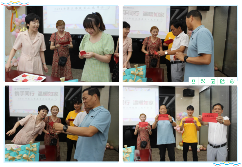 九月,秋高氣爽,碩果累累,秋日的微風(fēng)和陽(yáng)光是如此的美好。成長(zhǎng)不期而遇,生日如約而至。在精心布置的會(huì)議室里,輕快的音樂(lè)聲相隨,大屏幕上播放著美好的生日祝福,集團(tuán)公司為第三季度生日的員工舉辦了小小的生日Party。氣球、生日蛋糕、禮物、精致月餅、琳瑯滿(mǎn)目的零食飲品,每一處溫馨的細(xì)節(jié),都承載著公司對(duì)員工的愛(ài)與關(guān)懷。