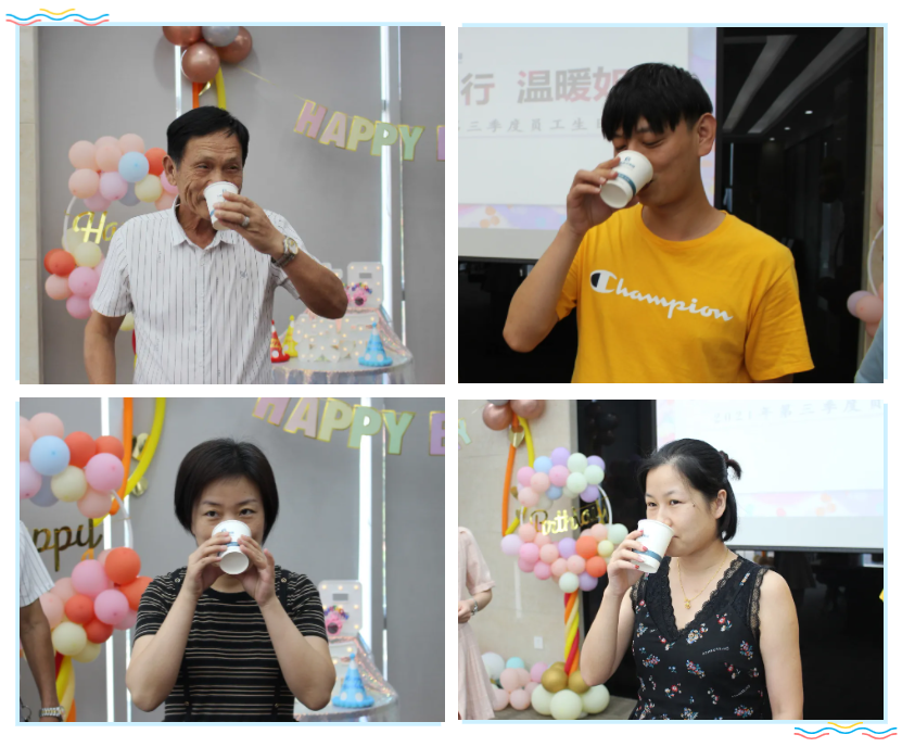 生日會(huì)簡(jiǎn)短而熱烈,大家品嘗著香甜的蛋糕,不僅讓員工們?cè)诰o張繁忙的工作之余,享受活躍又溫暖的輕松時(shí)刻;同時(shí),也讓壽星們感受到了公司領(lǐng)導(dǎo)的關(guān)懷,感受到了集體的溫暖,進(jìn)一步增強(qiáng)了員工的集體榮譽(yù)感、歸屬感和責(zé)任心,增強(qiáng)了公司凝聚力。
