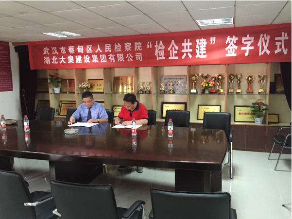 隨后武漢市蔡甸區(qū)人民檢察院與湖北大集建設(shè)集團(tuán)有限公司在集團(tuán)公司會(huì)議室舉行“檢企共建”簽約和授牌儀式。共同簽署了《檢企共建協(xié)議書(shū)》。集團(tuán)公司董事長(zhǎng)徐濤、總經(jīng)理徐遠(yuǎn)征對(duì)蔡甸區(qū)檢察院給予企業(yè)的幫助和支持表示感謝,并號(hào)召公司全體員工要提高思想認(rèn)識(shí),在蔡甸區(qū)人民檢察院的指導(dǎo)下,認(rèn)真開(kāi)展預(yù)防職務(wù)犯罪工作,確保企業(yè)正常經(jīng)營(yíng)活動(dòng)的有序開(kāi)展。